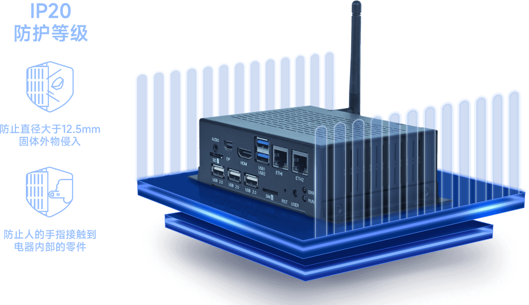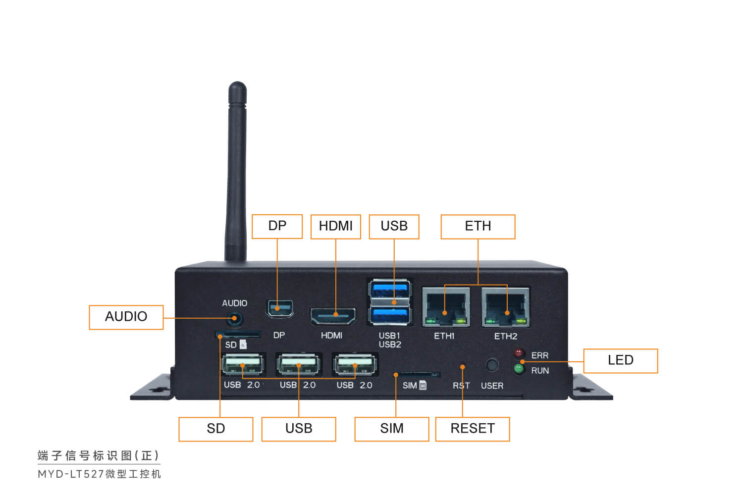 MYD-LT527-GK-B微型工控机,采用钣金外壳,达到IP20防护等级,适应性广泛,可直接应用于复杂工业环境,支持桌面安装和壁挂。