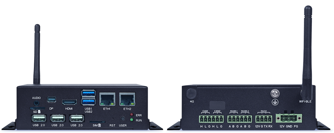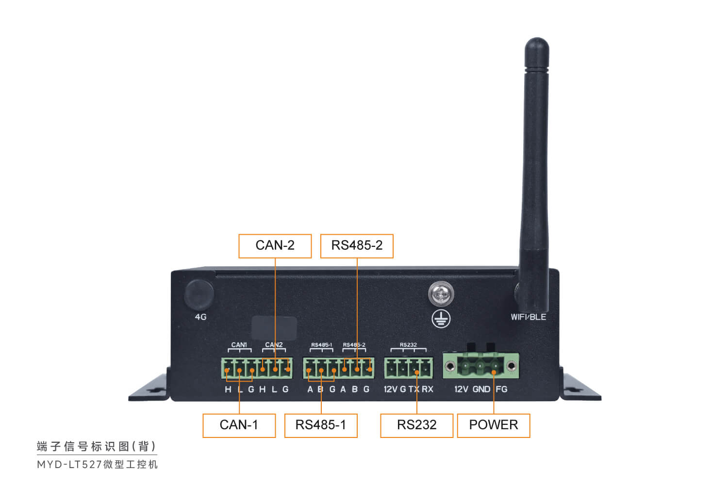 MYD-LT527-GK-B微型工控机接口丰富,具备HDMI+miniDP显示接口,支持4K+1080p双高清异显,3.5mm音频插座。支持双千兆网口、双频WIFI+BT、4G/5G无线通讯、USB3.0+4*USB2.0扩展、2*CAN2.0、2*RS485、1*RS232等。