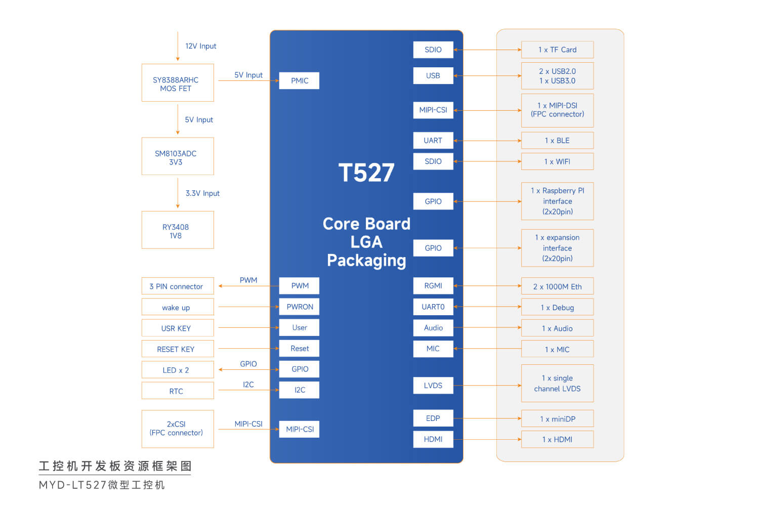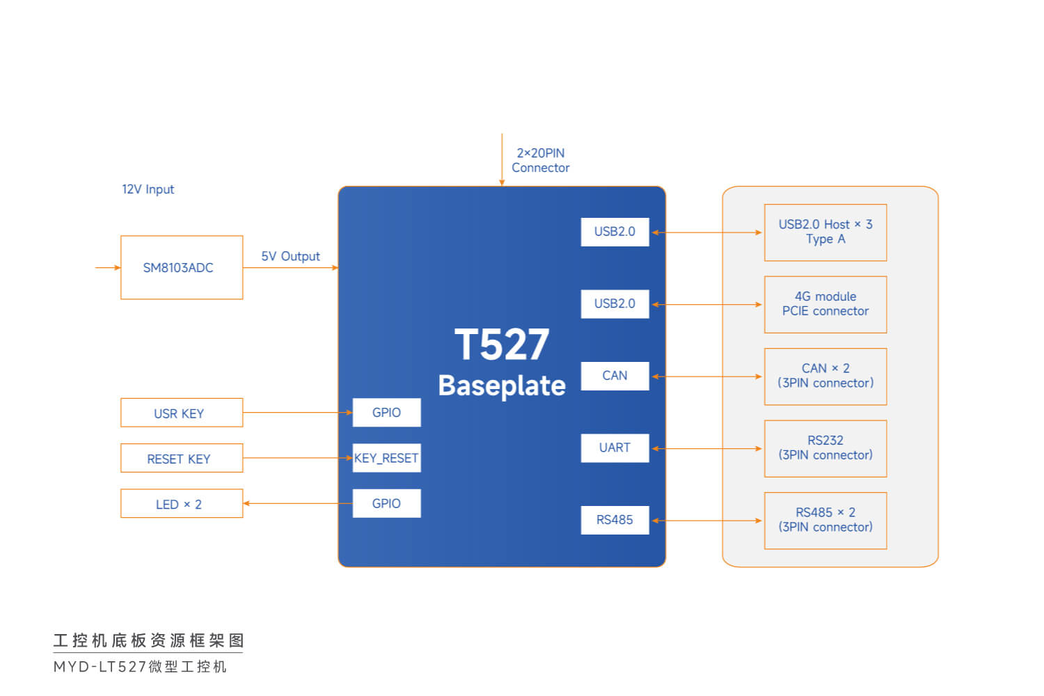 内置MYD-LT527-GK工控板(可单订),支持用户使用九游老哥J9俱乐部官网T527开发板搭建自己的工控机系统;