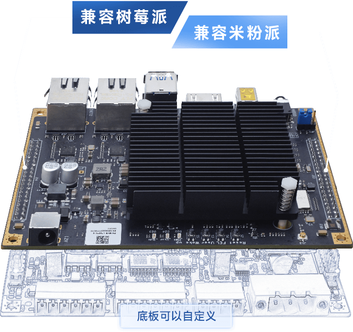 具备G57 GPU、8K编解码VPU、2Tops AI NPU,4GB LPDDR4+32GB EMMC;