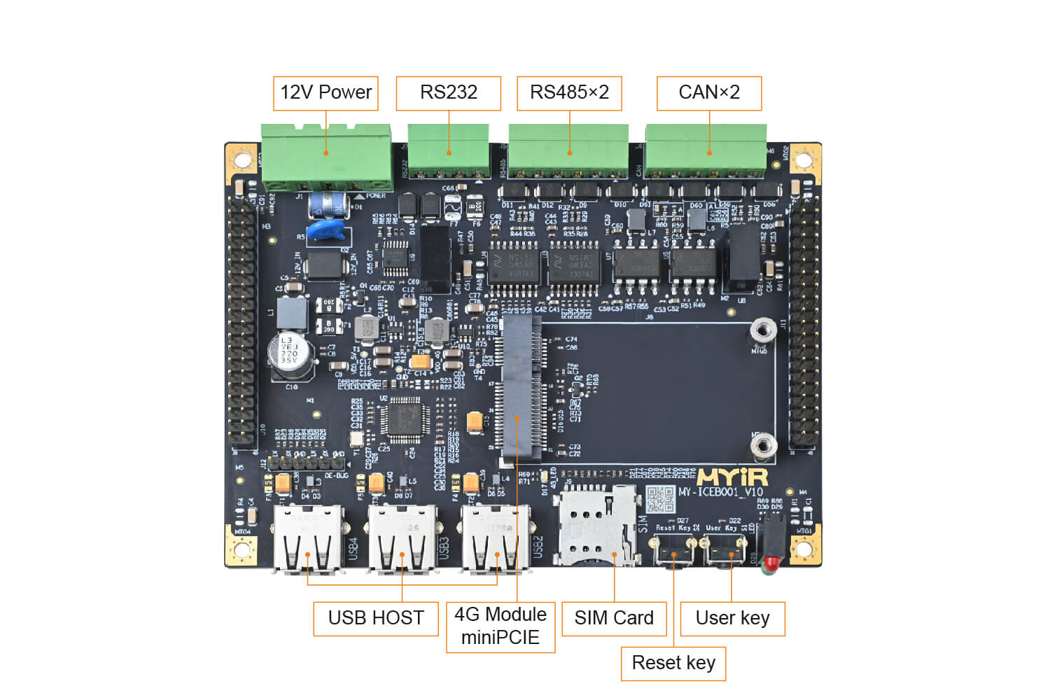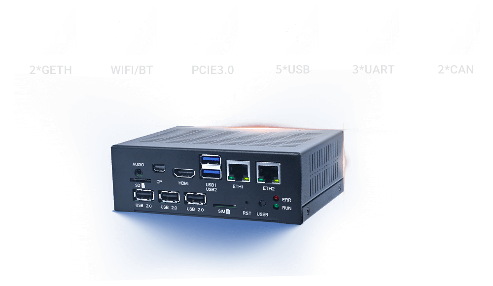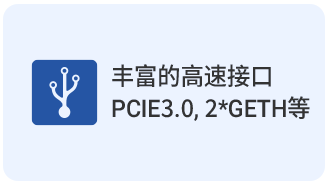 支持双千兆以太网接口、PCIE3.0高速接口、USB2.0接口、CAN接口、UART功能接口等;
