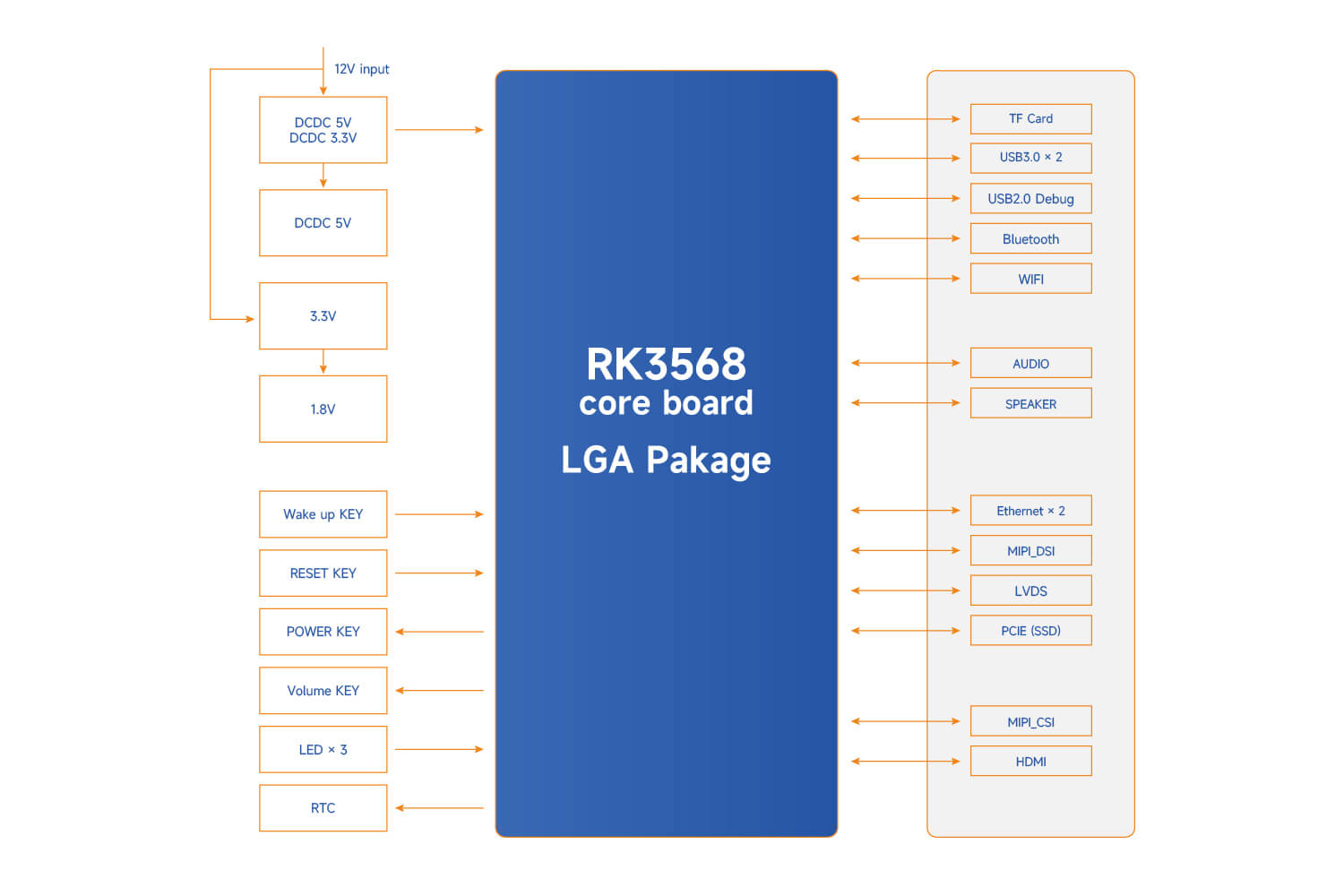 4xARM Cortex-A55高性能CPU,具备3D GPU、4K编解码VPU、支持AI NPU加速;
