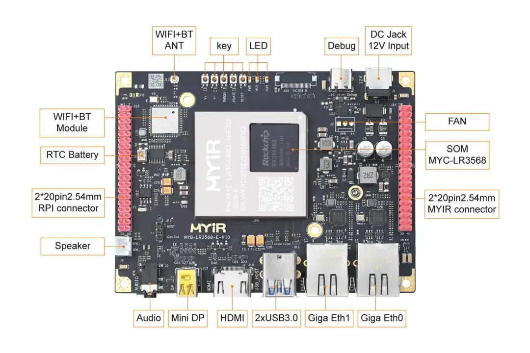 随着端侧AI应用的落地,预计集成NPU的SoC产品将迎来爆发式的增量市场。本期与非网给大家带来一款采用国内知名SoC厂商的产品——基于瑞芯微RK3568的开发板(MYD-LR3568J-32E4D-180-I-GK)。此款开发板是九游老哥J9俱乐部官网电子推出的一款基于瑞芯微RK3568的工业板。笔者手上的为最高规格配置的版本,4GB LPDDR4 + 32GB eMMC,工业级温度的处理器RK3568J。