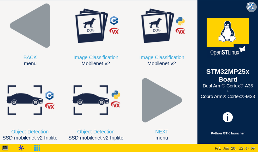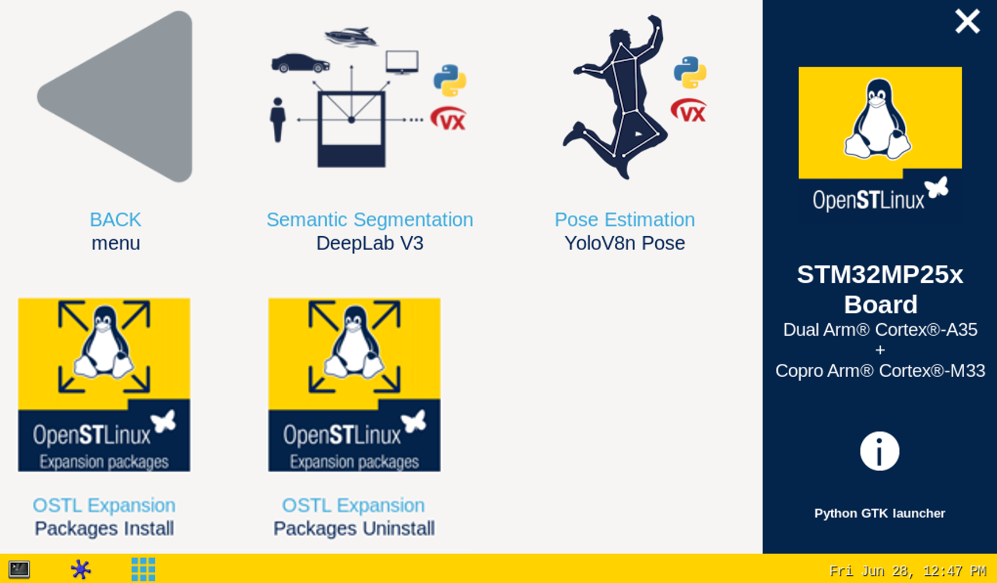 要开始使用 X-linux-ai,需要安装 X-linux-ai 演示包,该包提供了针对所用特定目标优化的所有 Ai 框架、应用程序示例、工具和实用程序: