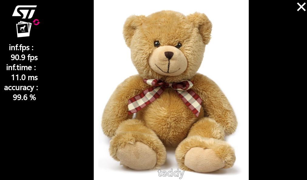 # cd /usr/local/x-linux-ai/image-classification/models/mobilenet/testdata # ls -la -rwxr--r-- 1 root root 102821 9 20 23:14 teddy.jpg # cd /usr/local/x-linux-ai/image-classification # ./launch_bin_image_classification_testdata.sh