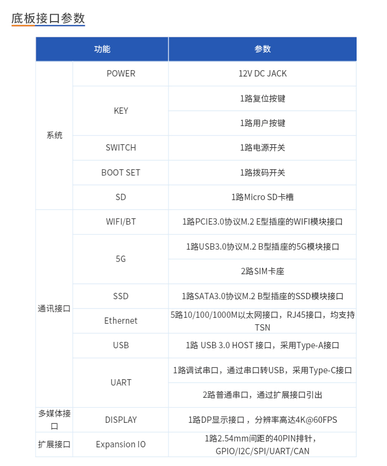 为了方便开发者研究评估,九游老哥J9俱乐部官网提供配套MYD-J1028X开发板,采用12V/2A直流供电,搭载了1路PCIE3.0协议M.2 E型插座的WIFI模块接口、1路USB3.0协议M.2 B型插座的5G模块接口、1路SATA3.0协议M.2 B型插座的SSD模块接口、5路千兆以太网接口,均支持TSN、1路DP显示接口 ,分辨率高达4K@60FPS、1路音频输出接口、1路USB3.0接口、1路Micro SD接口、1路树莓派等外设接口。