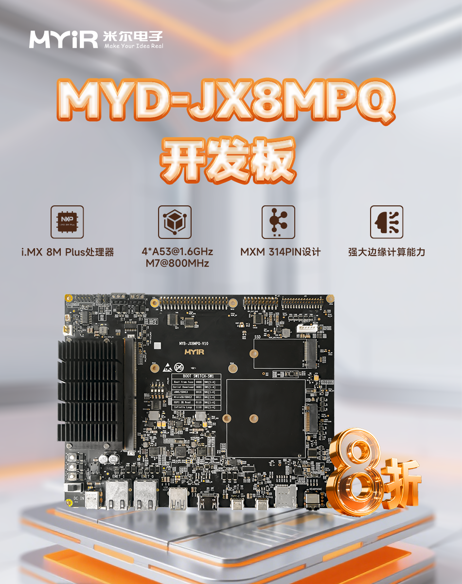 基于NXP i.MX 8M Plus处理器,2.3 TOPS算力,赋能高性能边缘计算 内核4×Cortex-A53@1.6GHz+Cortex-M7@800MHz 800MHz音频DSP、双摄像头(ISP)、3D GPU 、AI相关软件DEMO丰富 接口丰富:2路千兆以太网接口、2路CAN FD接口、2路USB3.0接口、4路UART接口、3路SPI、6路I2C 核心板:MXM封装,314PIN;尺寸45×82mm 工业级:-40℃~+85℃;支持Linux、Ubuntu系统