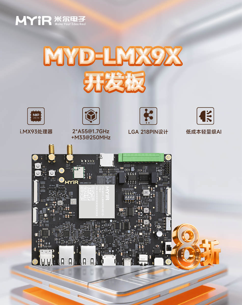 基于NXP i.MX 93处理器,2×Cortex-A55@1.7GHz+Cortex-M33@250MHz 集成0.5 TOPS NPU,赋能低成本轻量级AI应用 接口丰富:2路千兆以太网接口(1路支持TSN)、2路 CAN FD、8路UART、8路I2C、8路SPI 核心板:LGA封装,218PIN;尺寸37×39mm 工业级:-40℃~+85℃;支持Linux、Debian系统