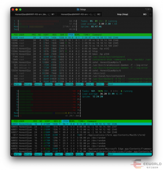 而macOS上跑了4个发送进程,结果把CPU都拉得满满的。