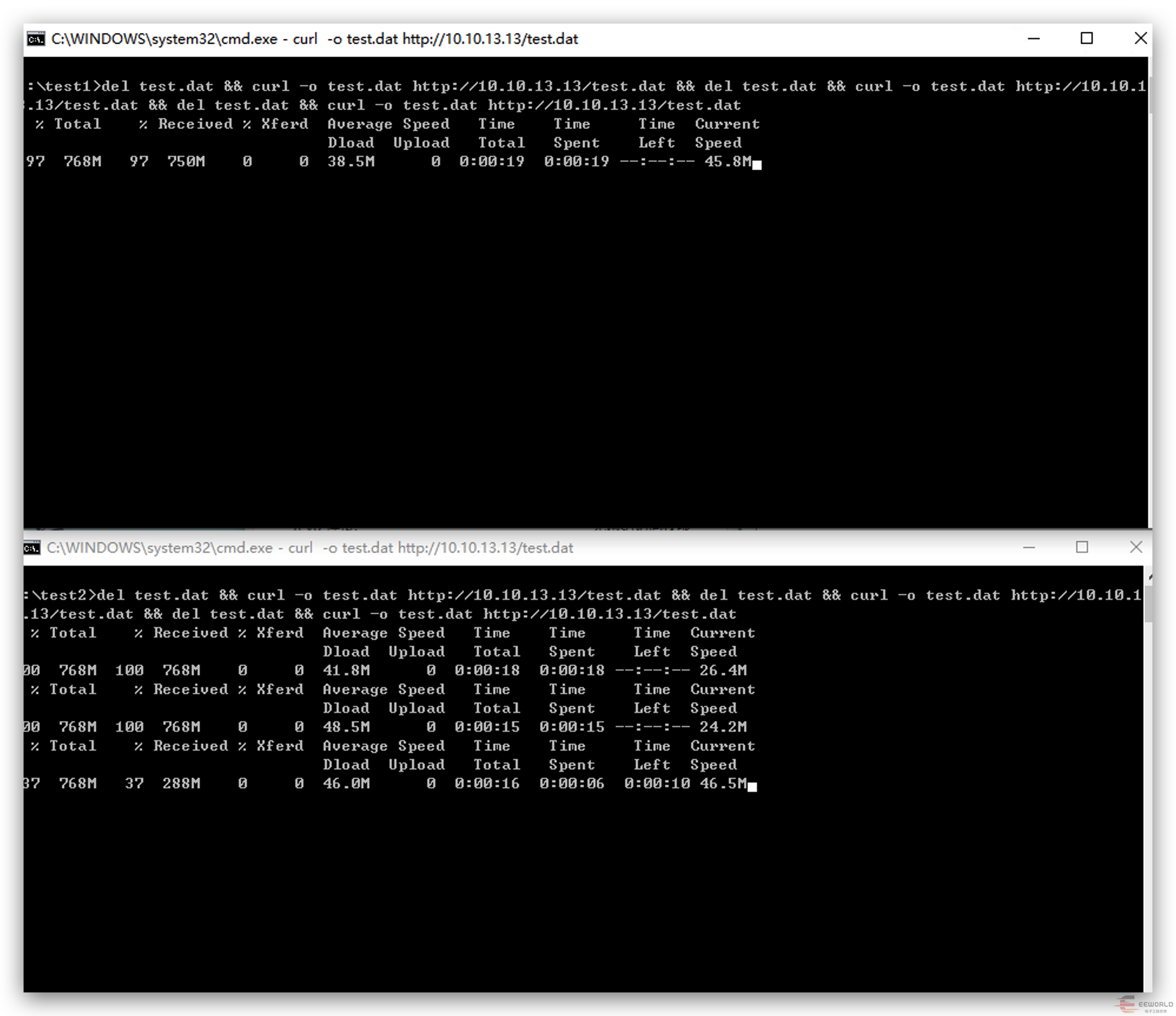 上面是使用nc进行数据传输,下面我们再使用axel通过nginx下载数据,看看带宽使用情况如何。