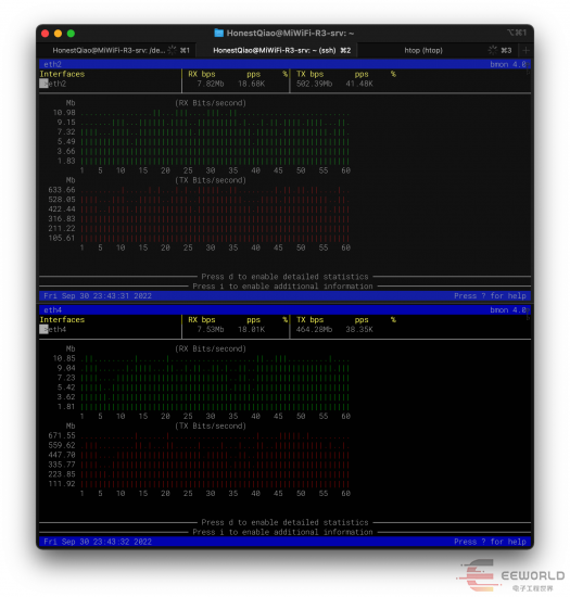 测试过程中, 可以看到,多个网口同时使用,带宽的使用,将更加的充分。