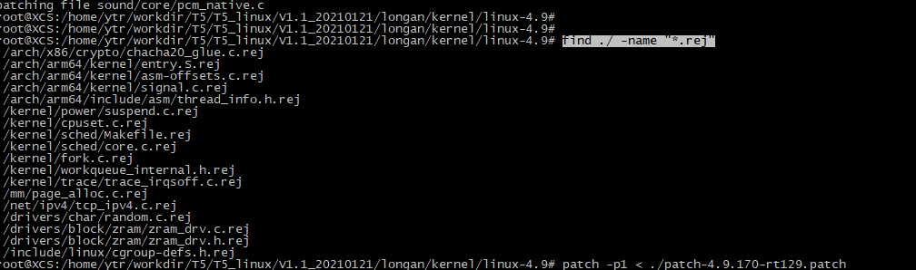 把解压后的补丁放到linux4.9目录下,然后用下面命令打包即可 patch -p1 < ./patch-4.9.170-rt129.patch
