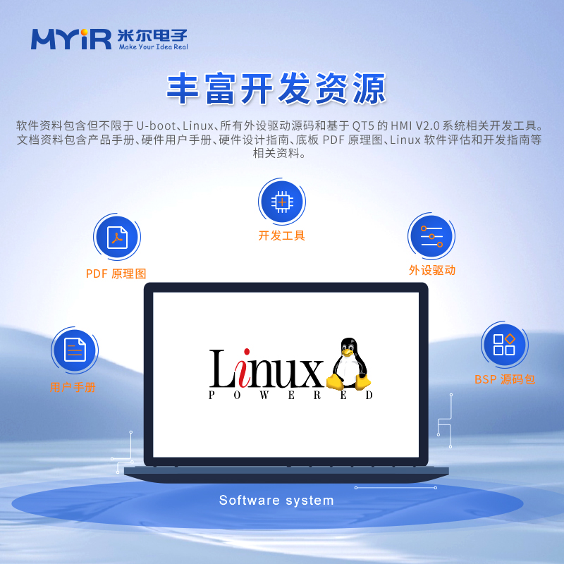 九游老哥J9俱乐部官网MYD-YT113X提供丰富的软件资源以帮助客户尽快实现产品的开发。在产品发布时,您可以获取全部的Linux BSP源码及丰富的软件开发手册。