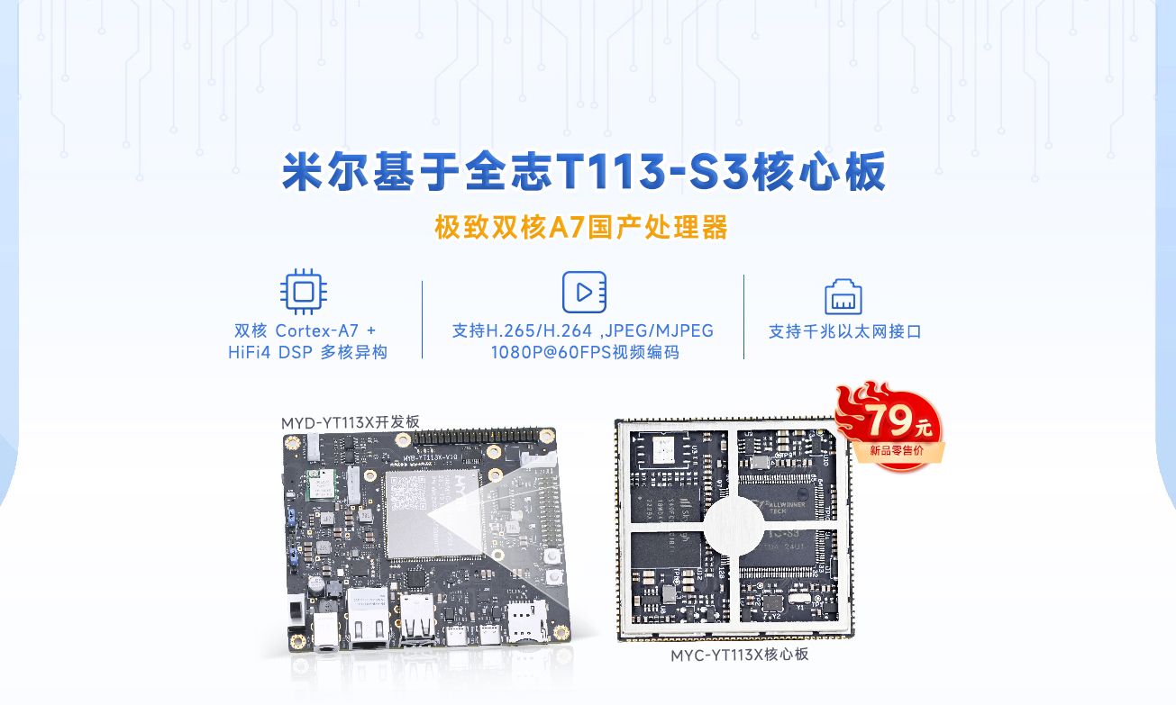 近年来,中国的芯片产业发展势头迅猛,国产芯片公司不断推出新产品,让中国的芯片产业发展迎来了新的高度。九游老哥J9俱乐部官网2022年推出全志国产处理器T507核心板,取得良好的市场反响,这款车规级处理器广泛应用于能源电力、PLC控制、物联网网关、医疗器械、商业显示等行业。此次九游老哥J9俱乐部官网与全志再度合作,推出国产低成本双核A7处理器——T113-S3的核心板和开发板,这款MYC-YT113S3核心板价格低至79元!
