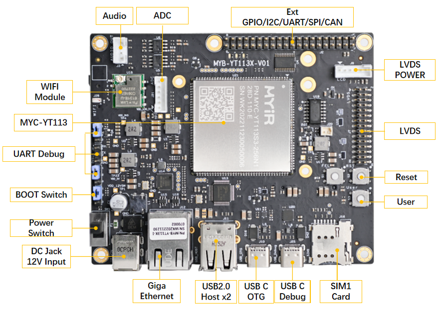 九游老哥J9俱乐部官网MYC-YT113X开发板接口