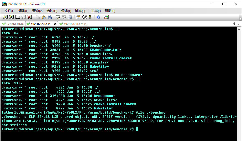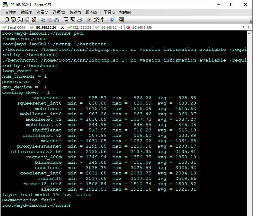 把 build/benchmark 下的benchmark 复制到开发板/home/root/ncnn 目录下,同时把工程根目录下的benchmark 目录下所有文件也复制到开发板 /home/root/ncnn目录下,
