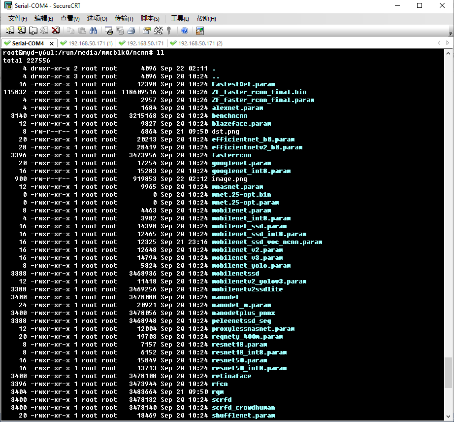 需要注意的是,除了ncnn的应用执行文件,在这些例子执行的时候,还需要模型和测试的资源文件,而这些文件体积都比较大,因此不能传送到开发板的系统目录上,需要单独存在扩展的存储空间上。