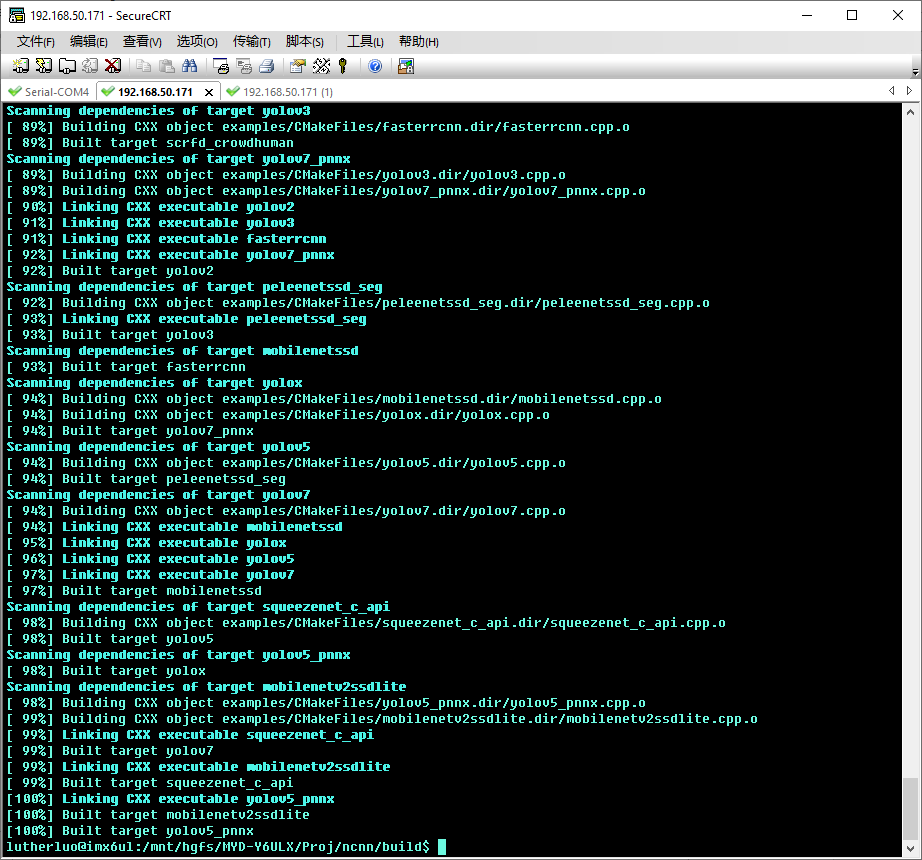 编译libncnn库文件成功,会继续自动编译 examples 下的例子文件。