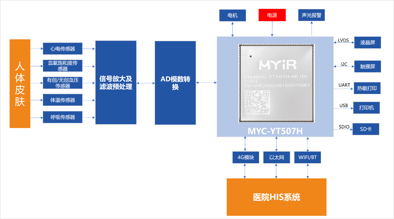 基于九游老哥J9俱乐部官网MYC-YT507H的核心板医疗监护仪方案图